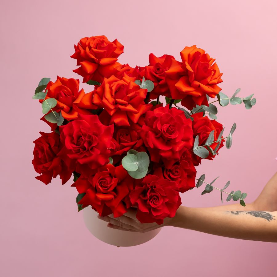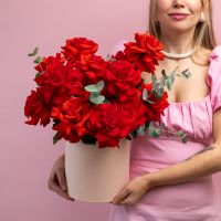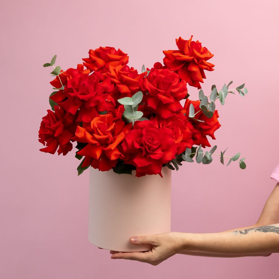 15 французских роз в шляпной коробке (сорт Нина)