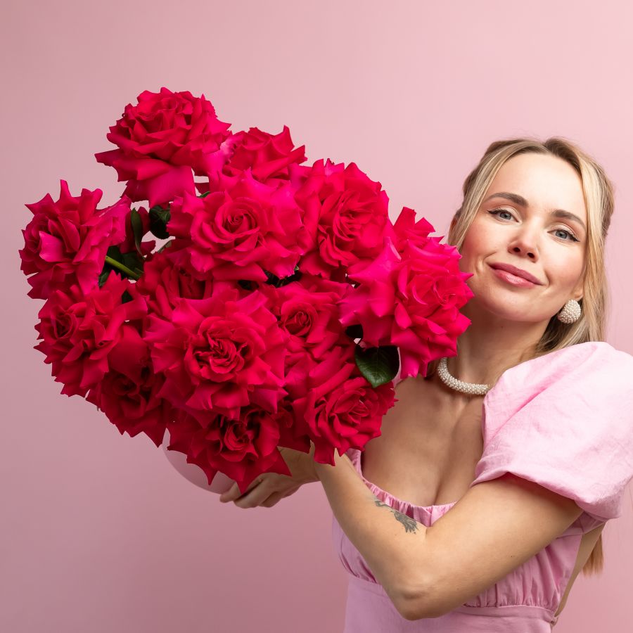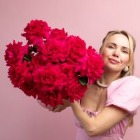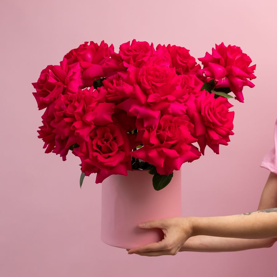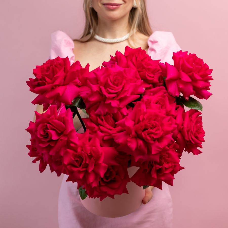 15 французских роз в шляпной коробке (сорт Пинк Флойд)