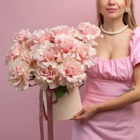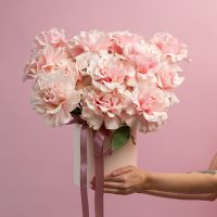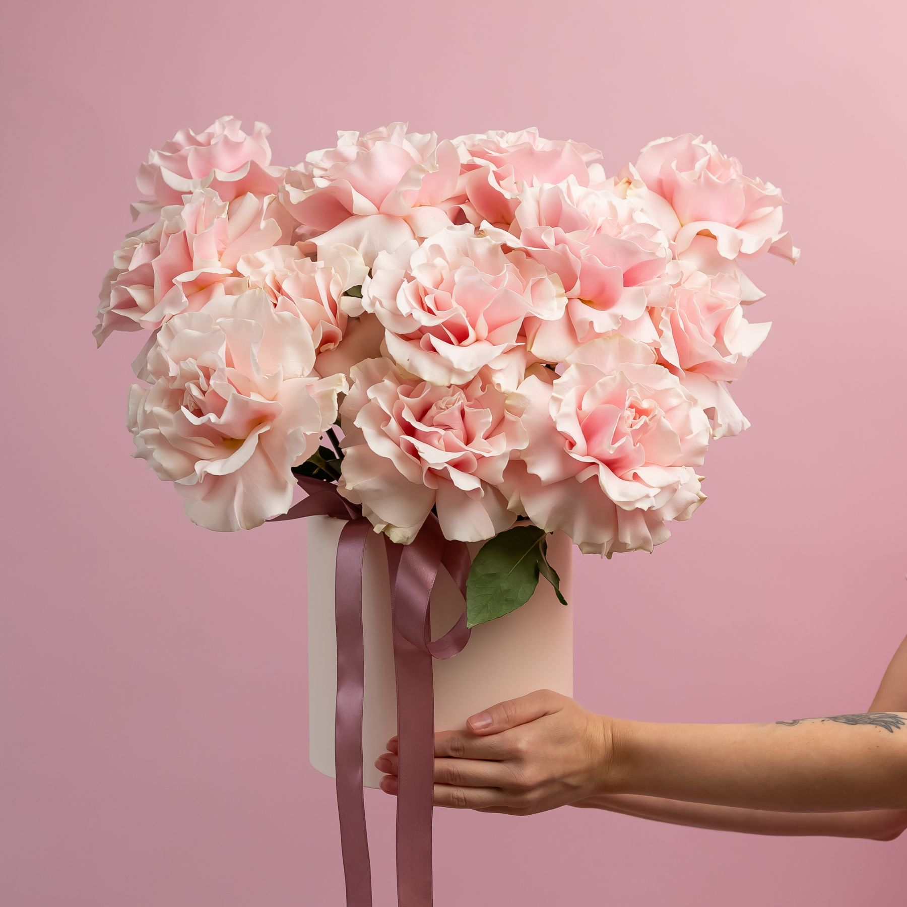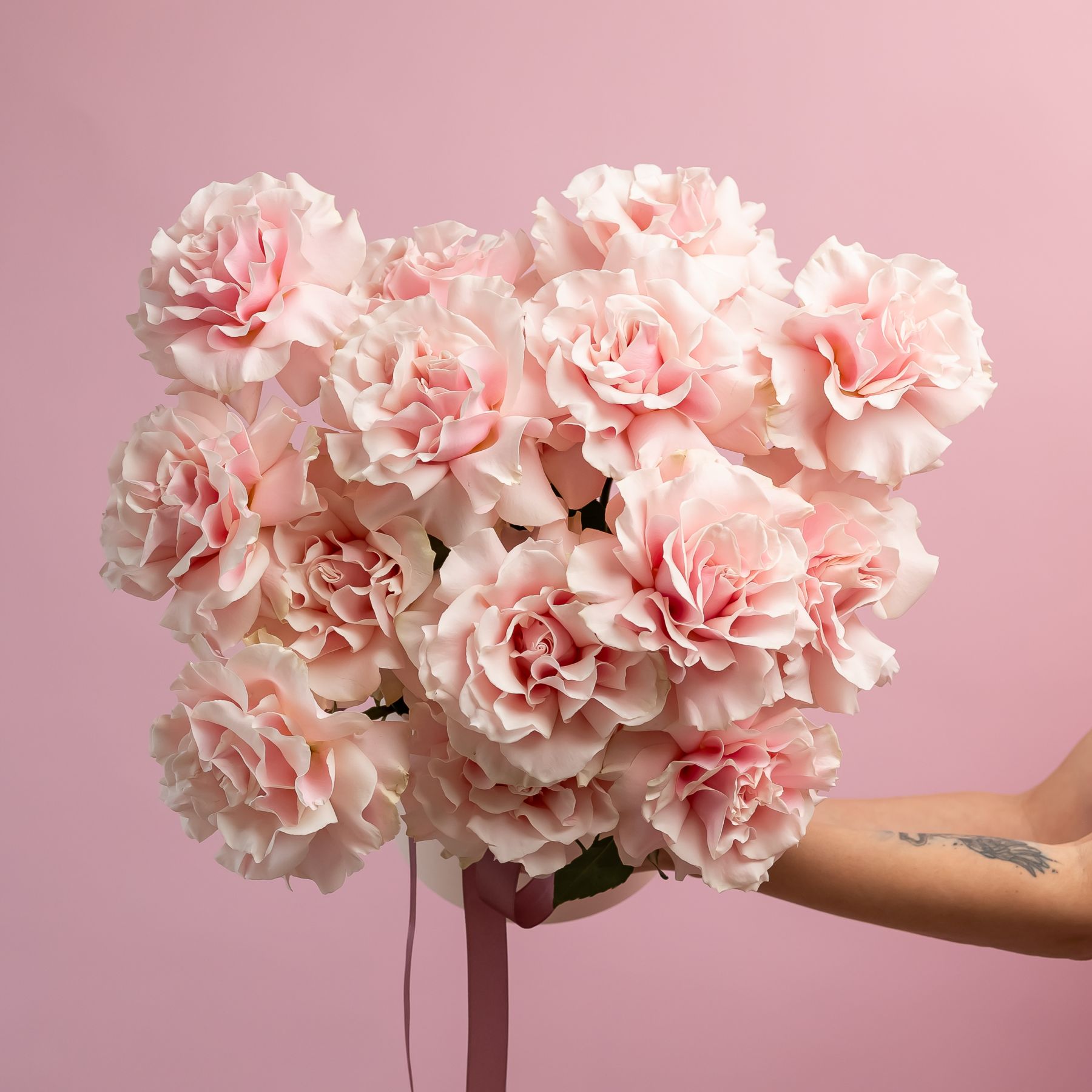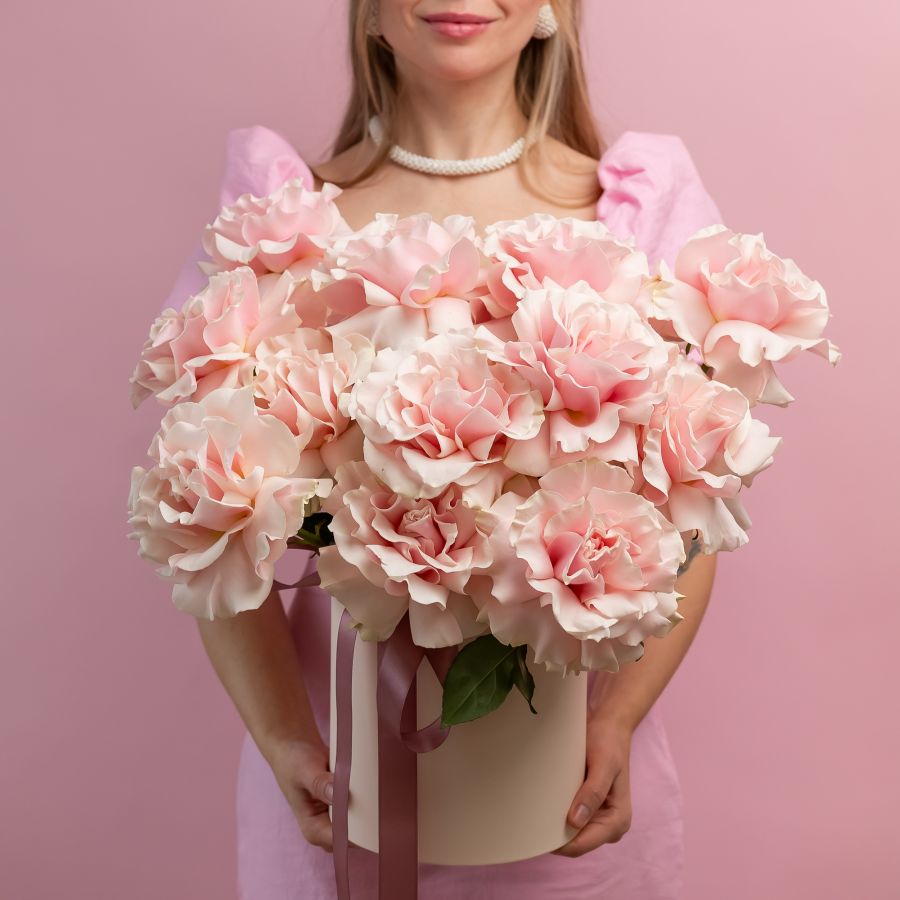 15 французских роз в шляпной коробке (сорт Пинк Мондиаль)