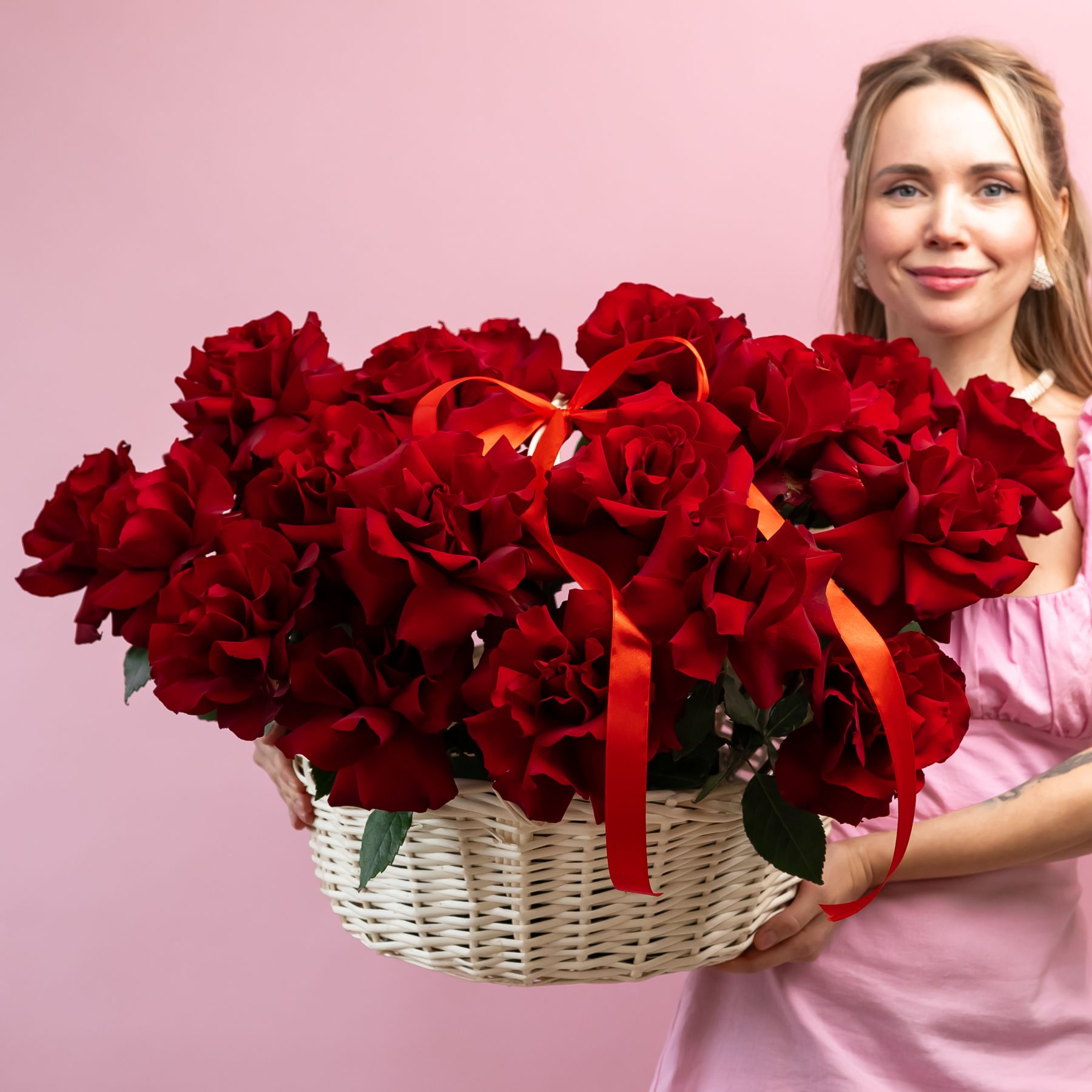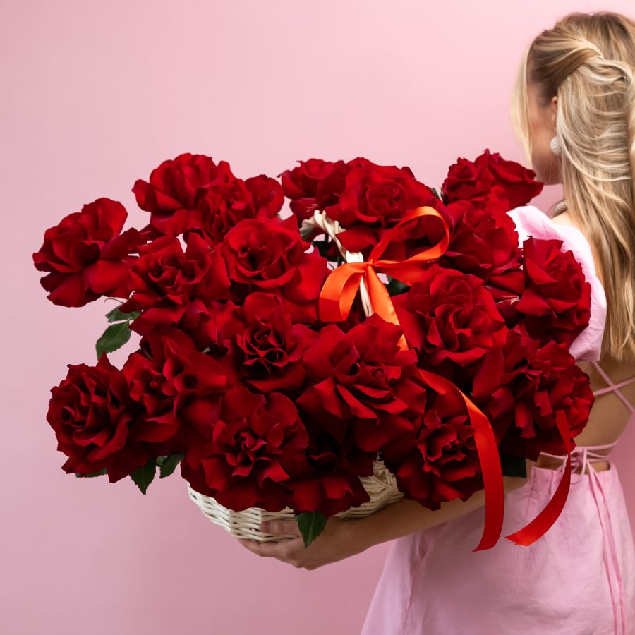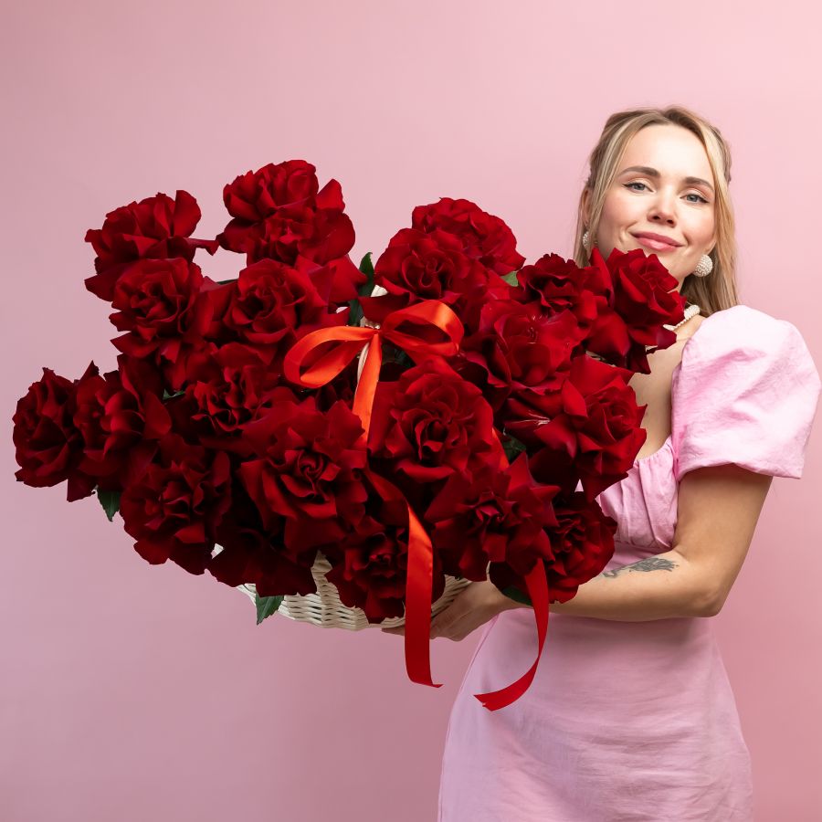 25 Французских роз (Эксплорер) в корзине размер L (40/37)