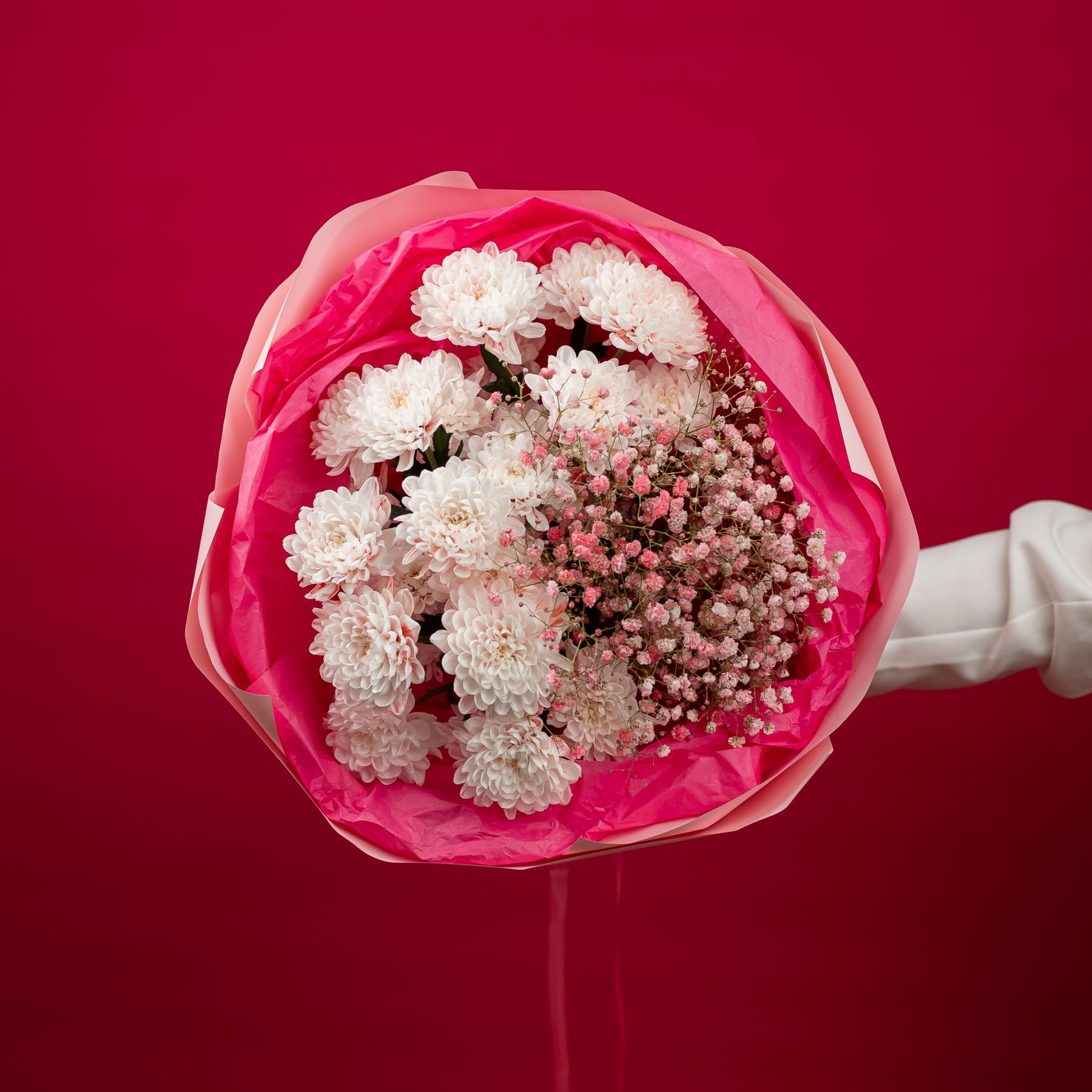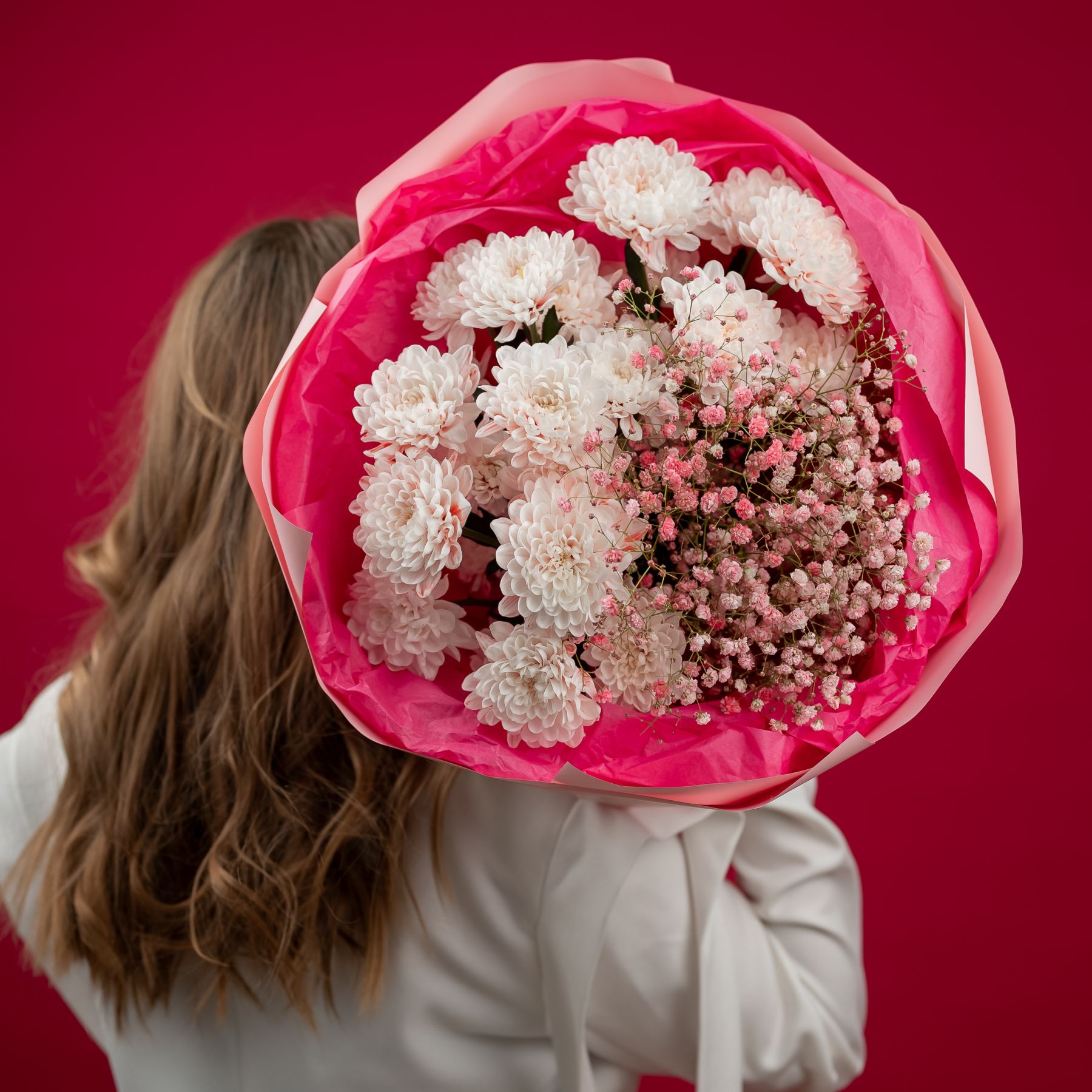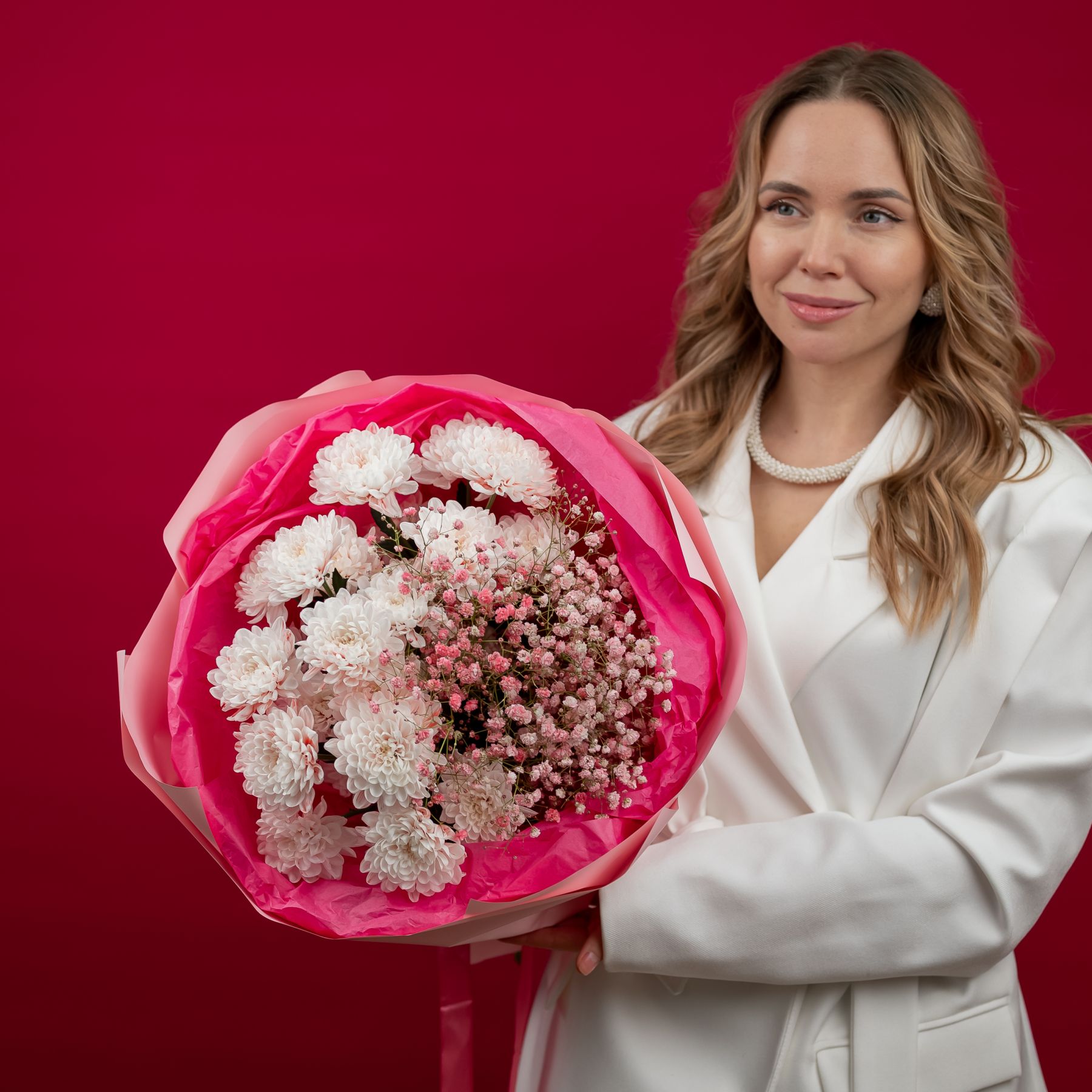 Состав: кустовая хризантема Алтай - 3 шт гипсофила - 3 шт упаковка - 1 шт