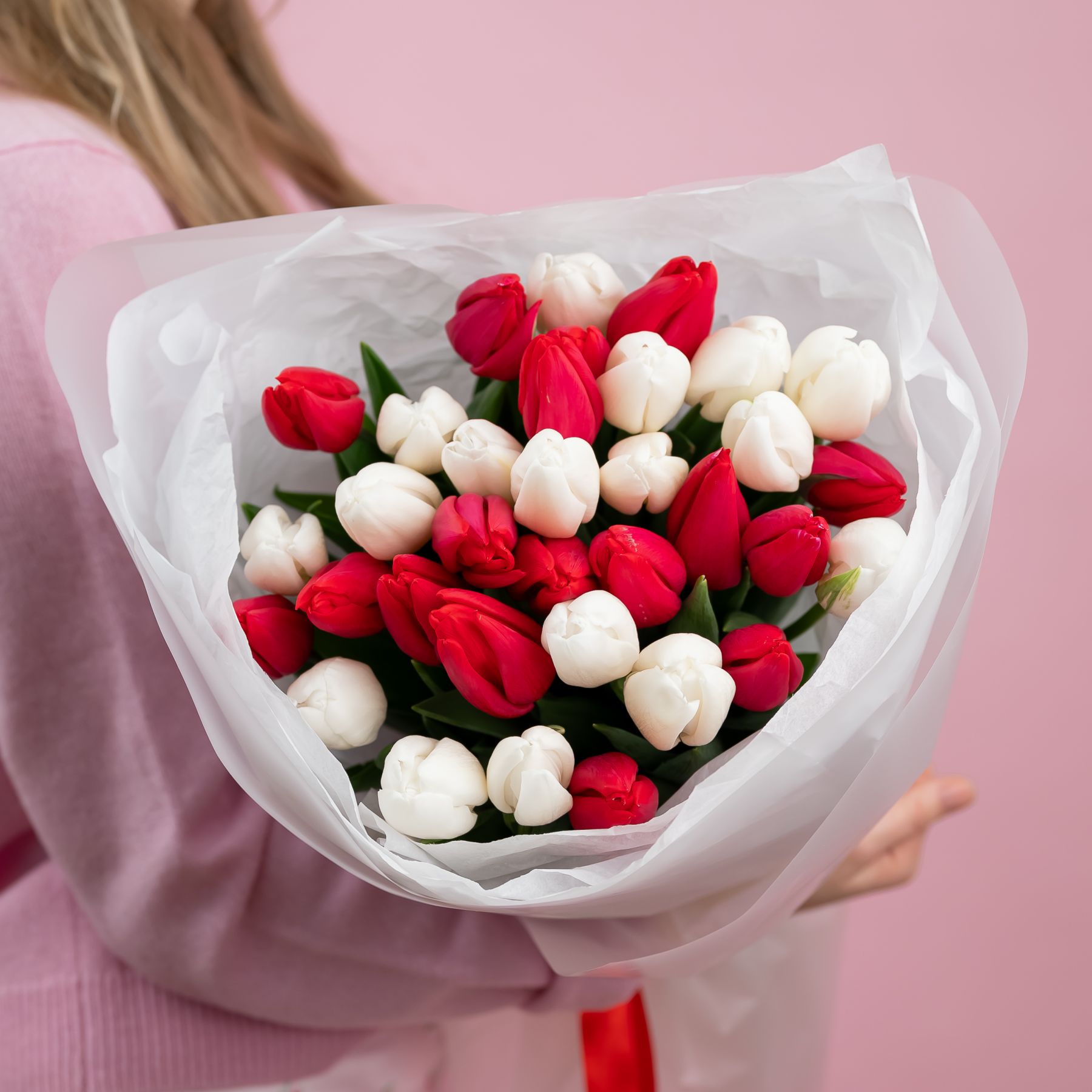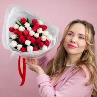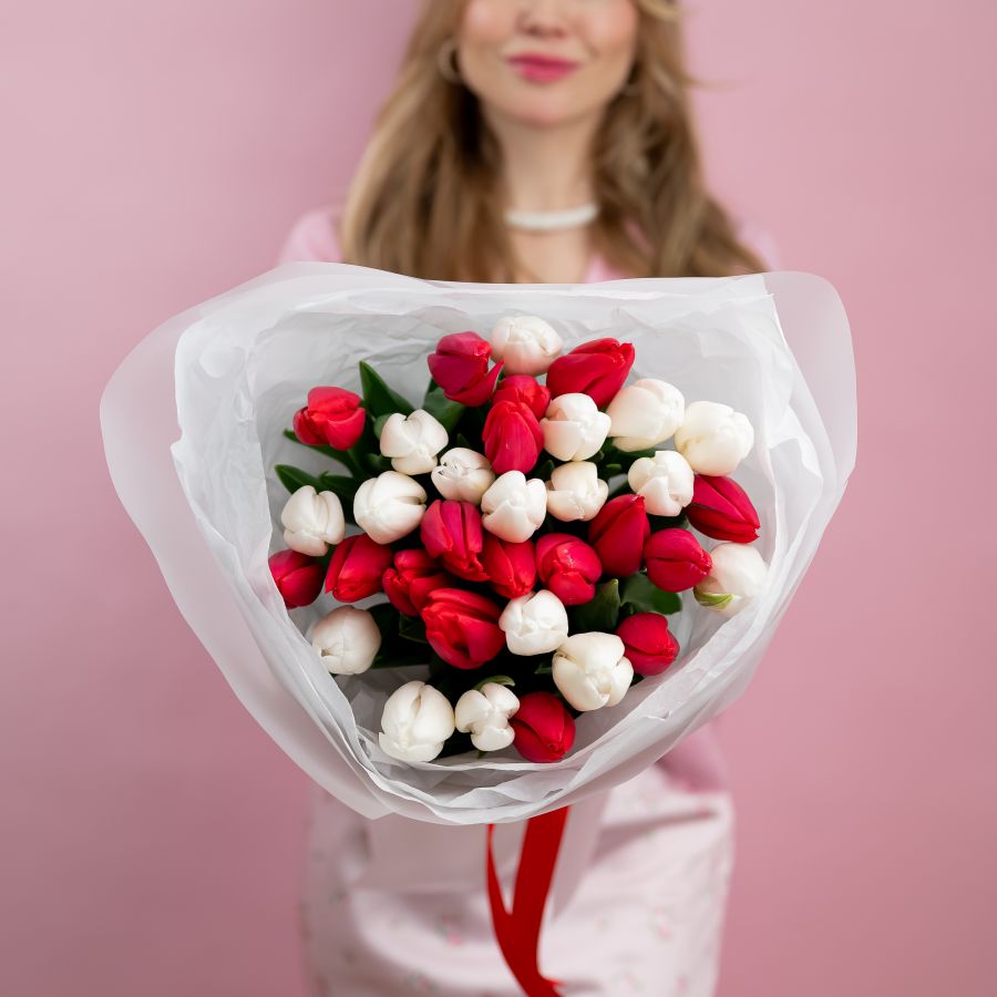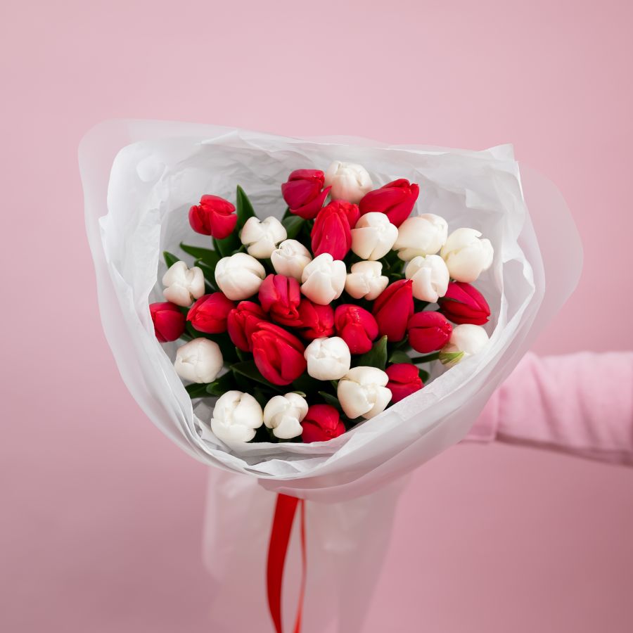 тюльпаны красно белые от 15шт