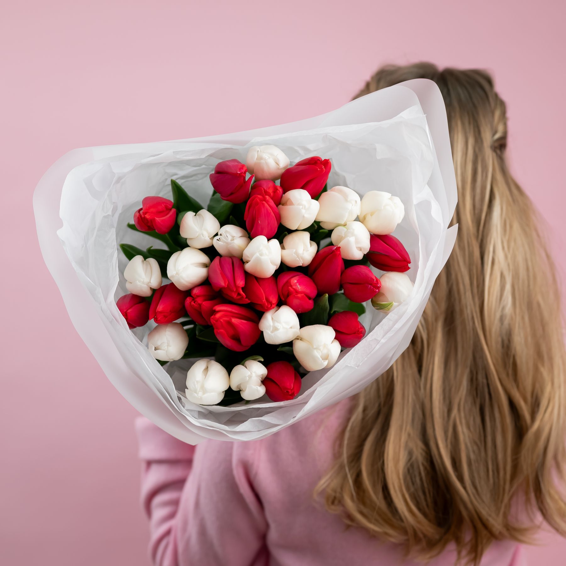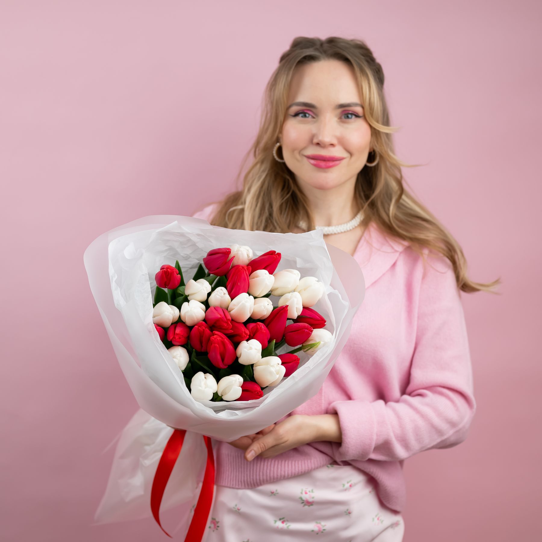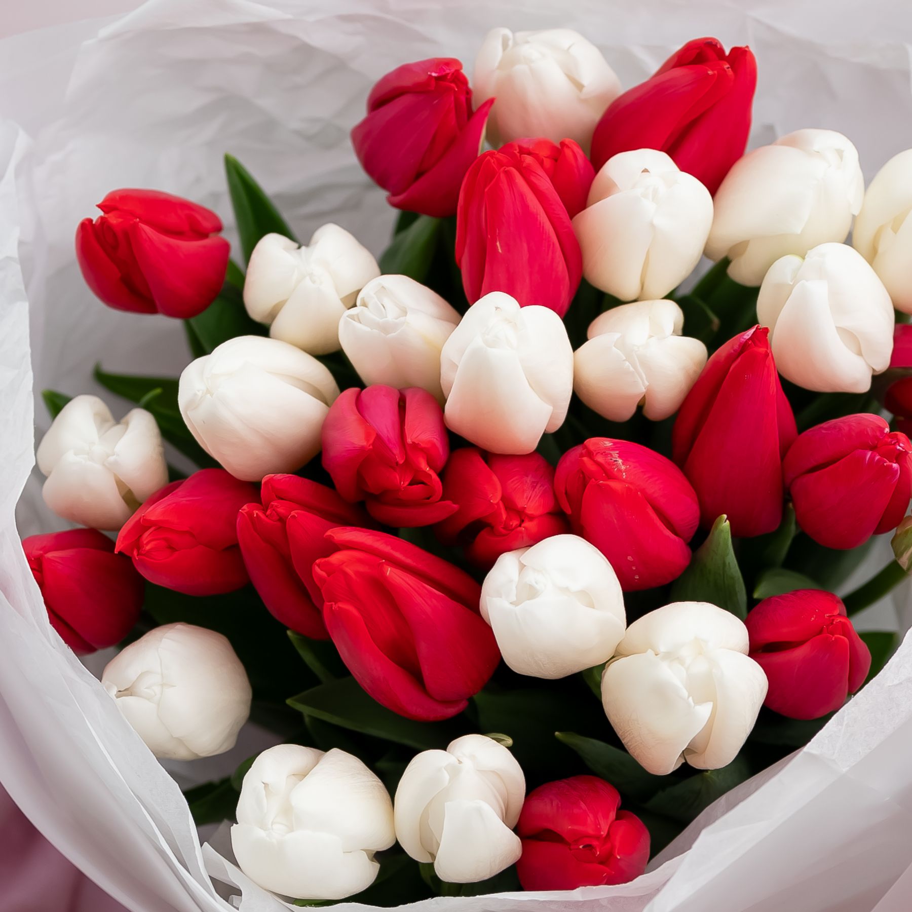 тюльпаны красно белые от 15шт