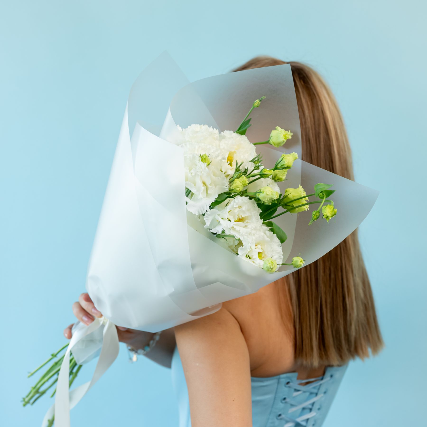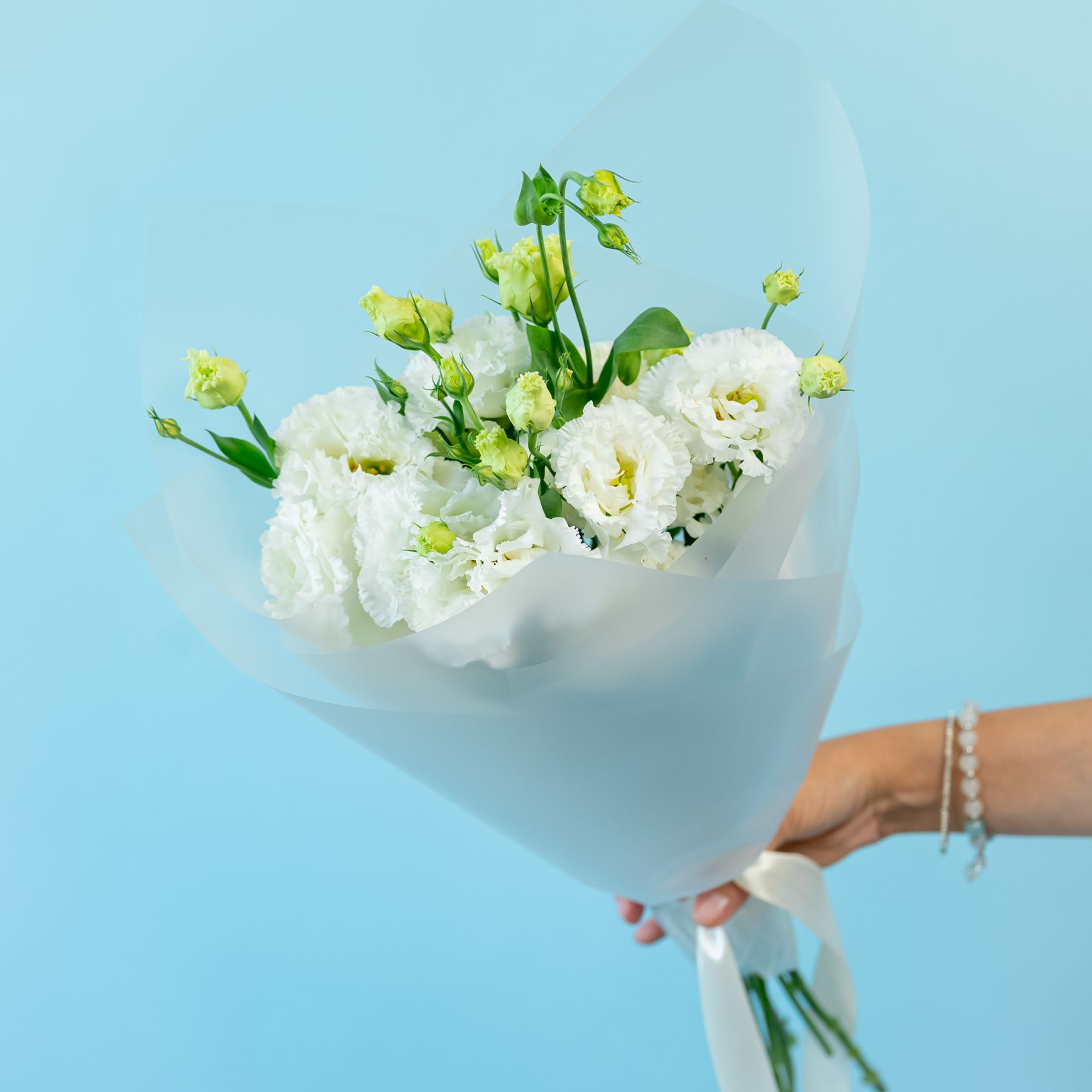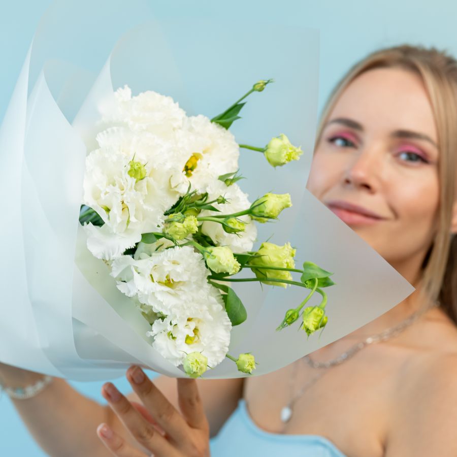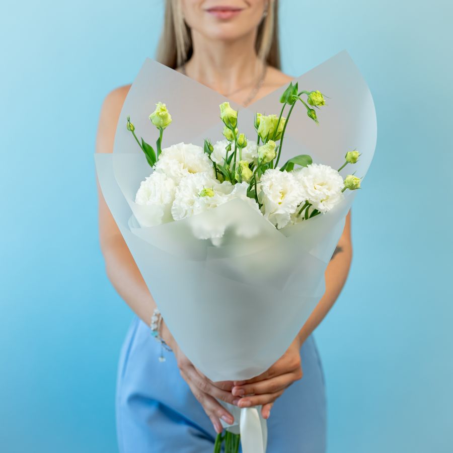 5 белых эустом в упаковке