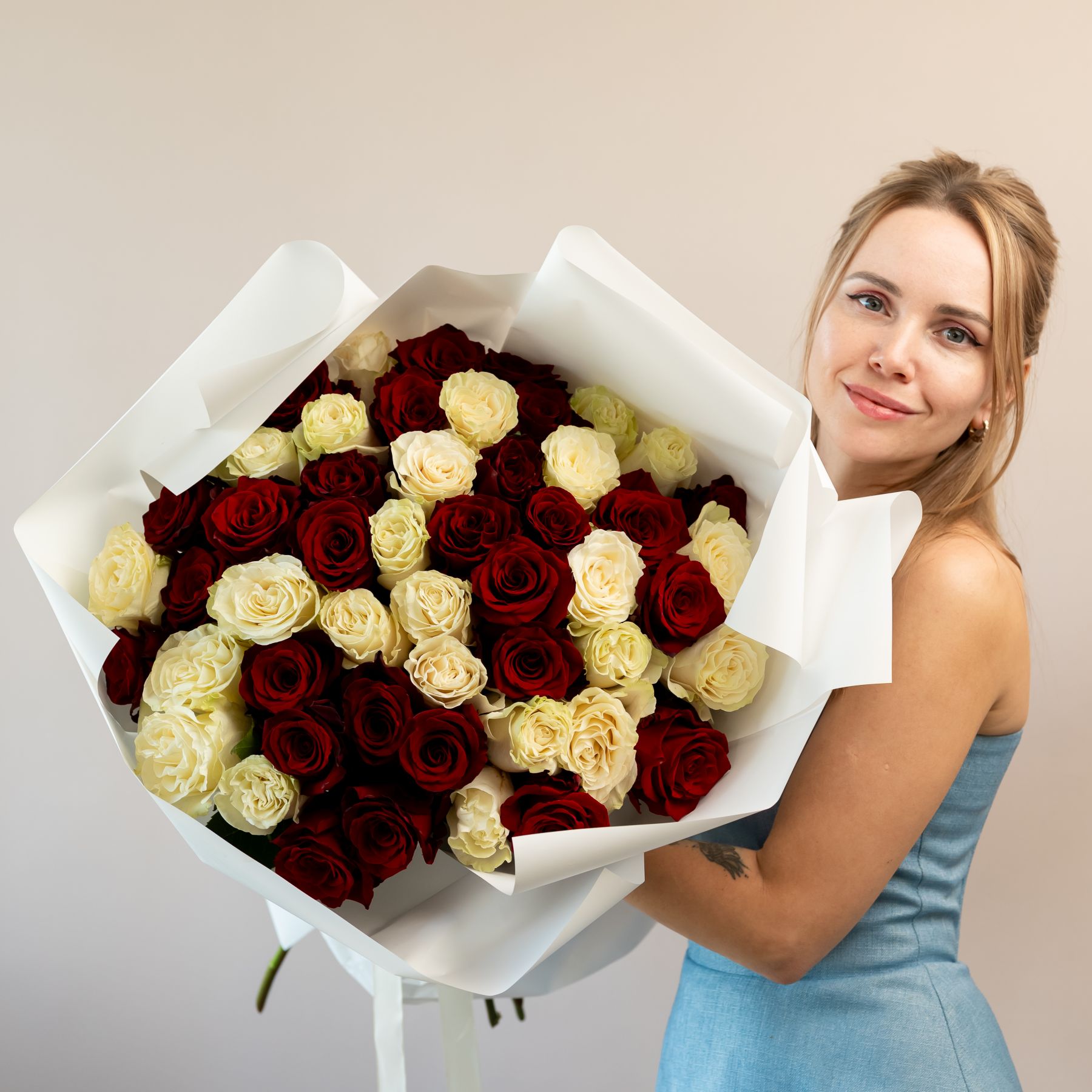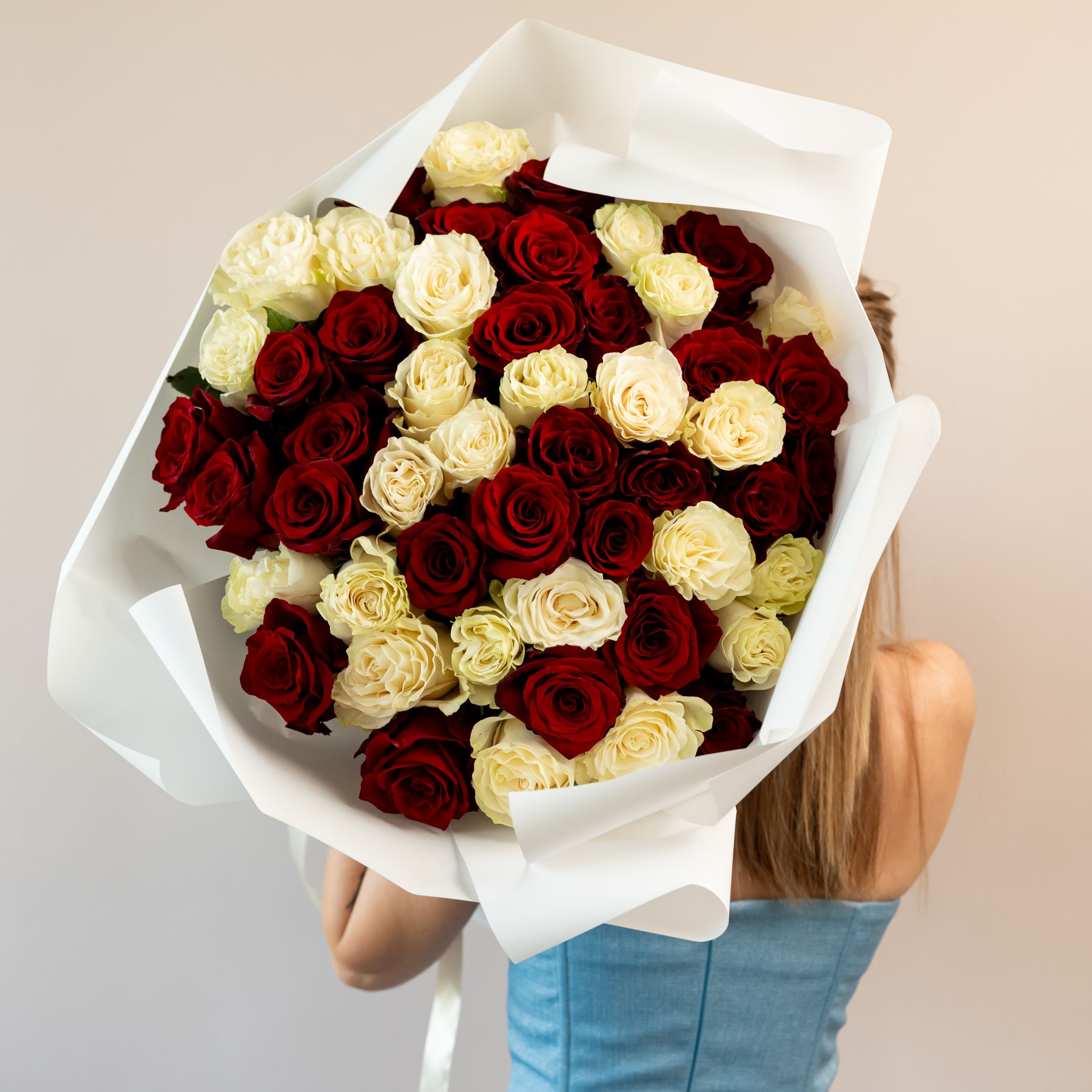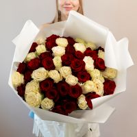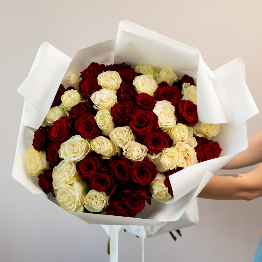 51 красная и белая роза (60см)