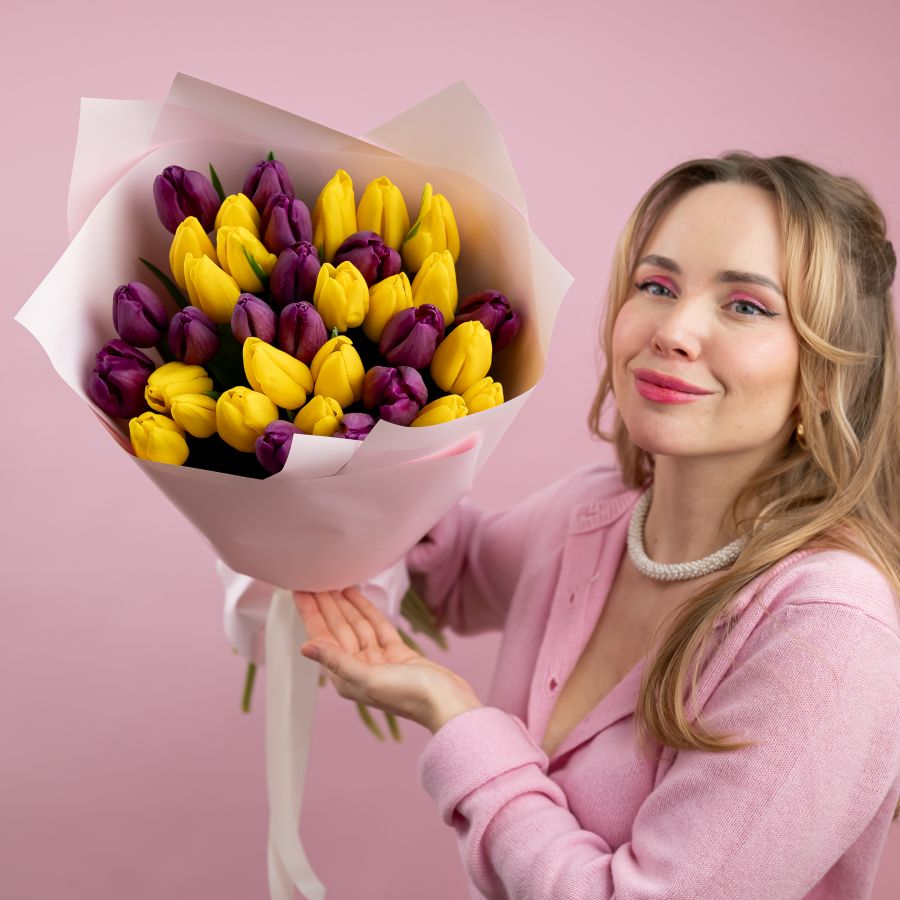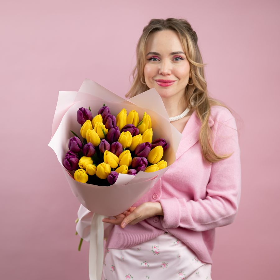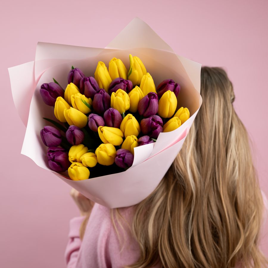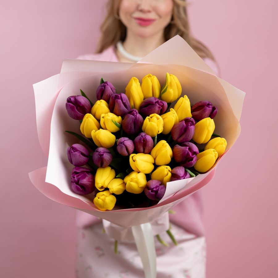 Тюльпаны желтый и фиолетовый 35ШТ