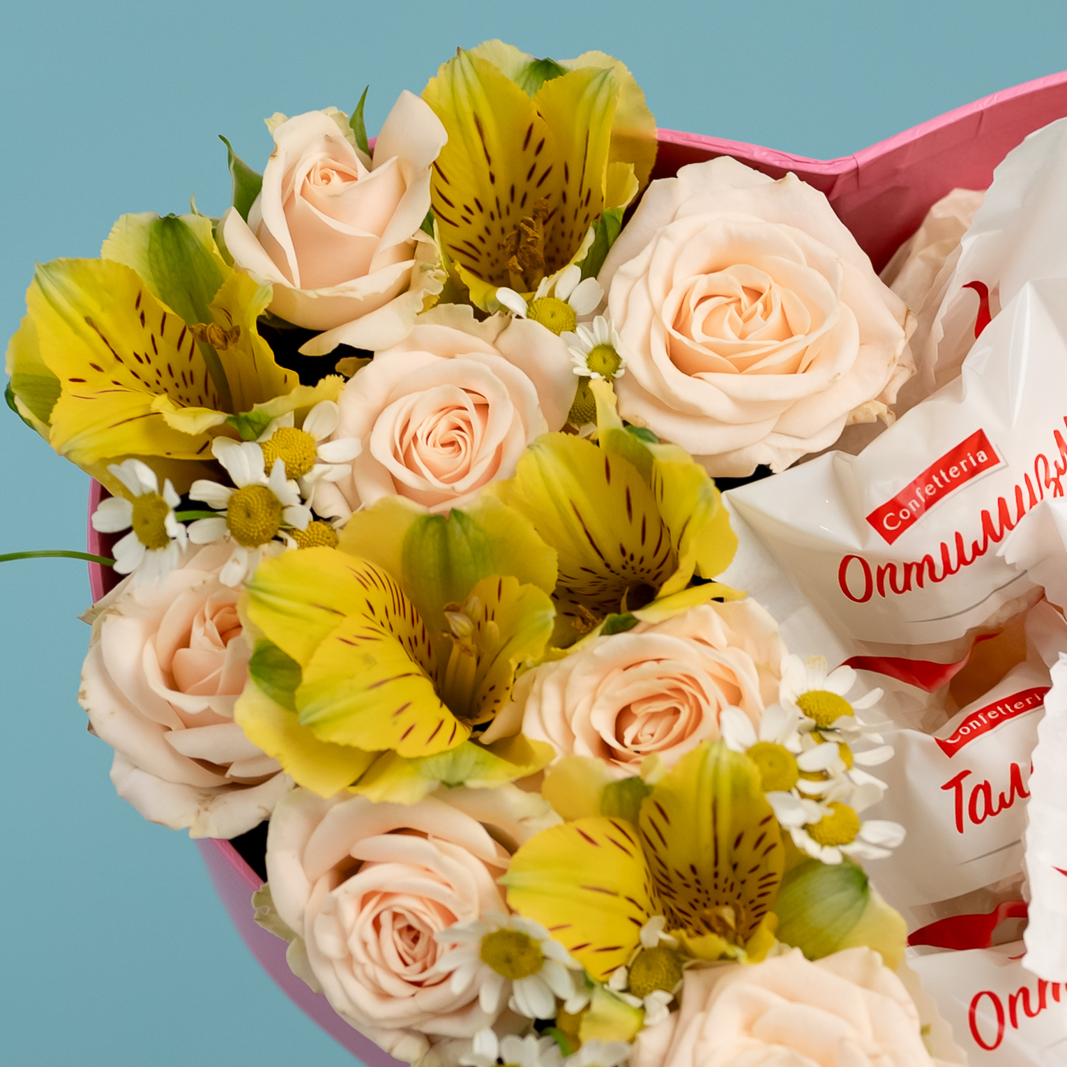 В связи с сезонностью цветов, состав букета может быть изменён на усмотрение флориста. Цветовая гамма и стилистика букета остаются прежними.