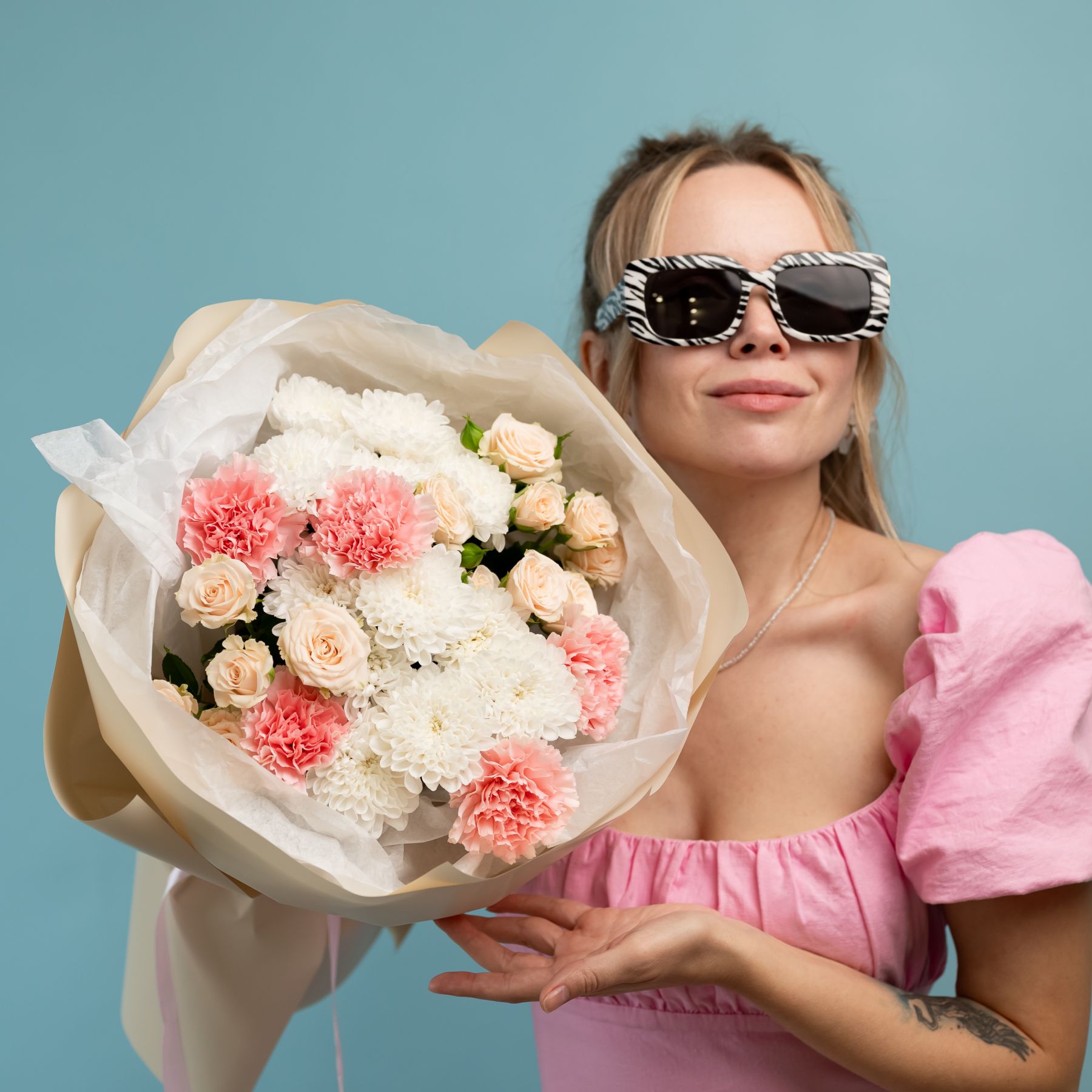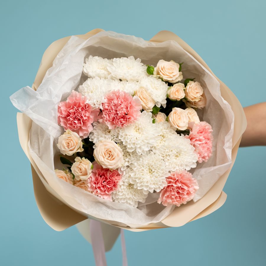 В связи с сезонностью цветов, состав букета может быть изменён на усмотрение флориста. Цветовая гамма и стилистика букета остаются прежними.