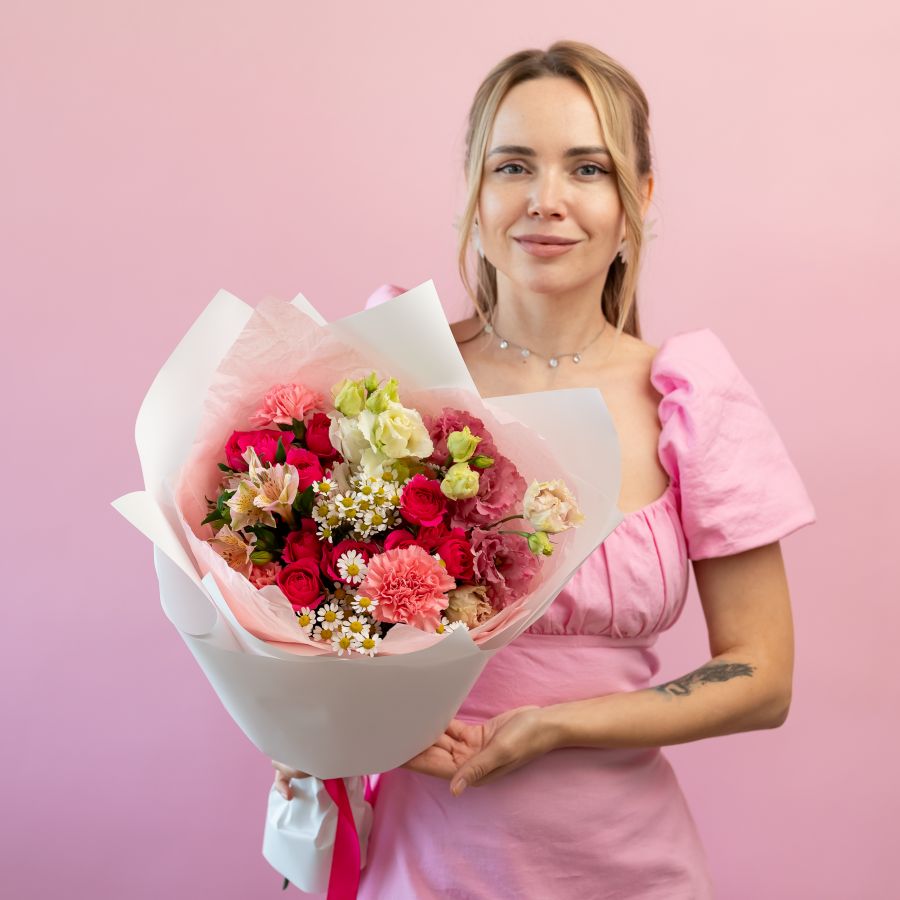 В связи с сезонностью цветов, состав букета может быть изменён на усмотрение флориста. Цветовая гамма и стилистика букета остаются прежними.