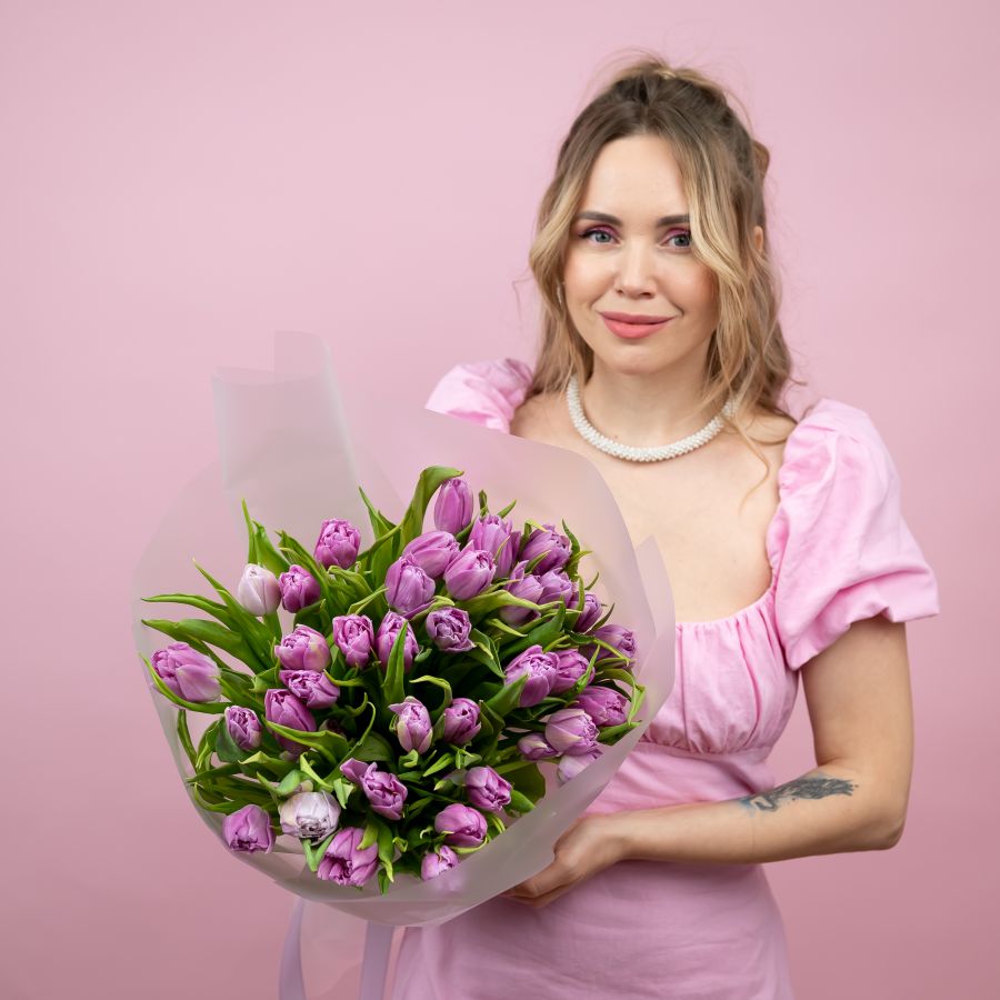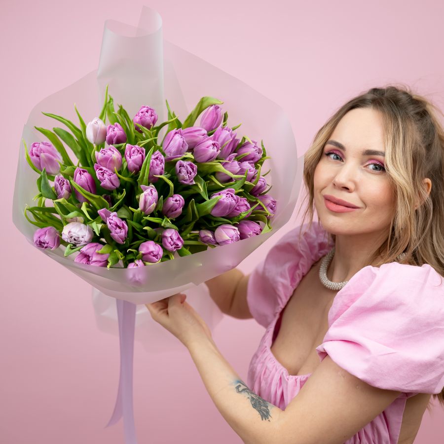 Тюльпаны пионовидные сиреневые от 15шт